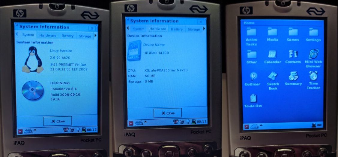 While cleaning out my collection of electronics, I found a PDA. Not the modern kind (voice assistant), but the old school precursor to the smartphone. It's a HP iPAQ h4350, it was a model used by the Dutch Railways. I picked it up in working condition years ago and was wondering, how does a mobile device from 2003 stack up to a modern smartphone? The first thing I did was run linux on it which worked surprisingly well, it however was noticeably slower than Windows Mobile. This post shows you how well the device still works in 2022, including using WhatsApp to chat. Almost all things I use my smartphone for, I can do with this PDA!